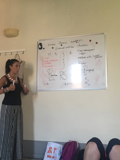 Perjantaina tutustuin Mindfulness for teachers: A hands on approach -kurssiin hurmaavan Elenan johdolla. Aluksi teimme harjoituksia ja reflektoimme niitä tietoista kuuntelua hyödyntäen. Opettaja korosti, että mindfulnessia tulee kokeilla itse ja siitä on löydettävä oma, itselle toimiva juttu. Tauon jälkeen käsittelimme stressiä ja siihen reagoimisen tapoja. Kurssin jälkeen jatkoin päivää keskustelemalla Ambran kanssa henkilöstöjohtamisen käytänteistä, perehdyttämisestä ja tietosuojasta.