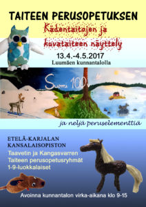 - 22.-24.4.2017 opistotalolla, Pohjolankatu 27. Näyttely on avoinna la 22.4. klo 10 -15, su 23.4. klo 11-16 ja ma 24.4. klo 10-15.