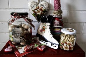 ”Vanha kahvipurkki saa uuden ilmeen lautasliinojen kuvioaiheilla, nauhoilla ja helmillä. Myös vanhoja puisia henkareita voi päällystää sopivalla servetillä”, Nuutinen vinkkaa.