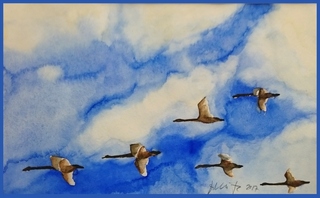 Sinivalkoisia sävyjä kevätnäyttelyssä ja taiteen perusopetuksessa