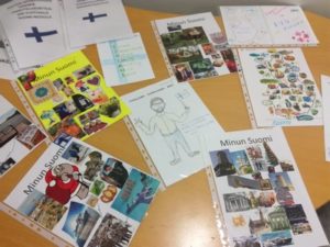 Suomi-neidon onnittelukortit ja Minun Suomi -kirjoitukset ovat kokonaisuudessaan nähtävillä opistotalolla.